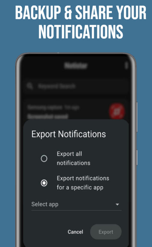 β¨ Key Features:π Notification History β Save and view all past notifications in one timeline.π Search Notifications β Quickly find any message or alert from your history.π‘ Recover Deleted Notifications β Read messages that were deleted before you saw them.π Organized Storage β Keep your notification history neatly sorted by app.π Export Feature β Save and backup your entire notification history.β Whitelist Apps β Choose which appsβ notifications you want to track with NotiStar.